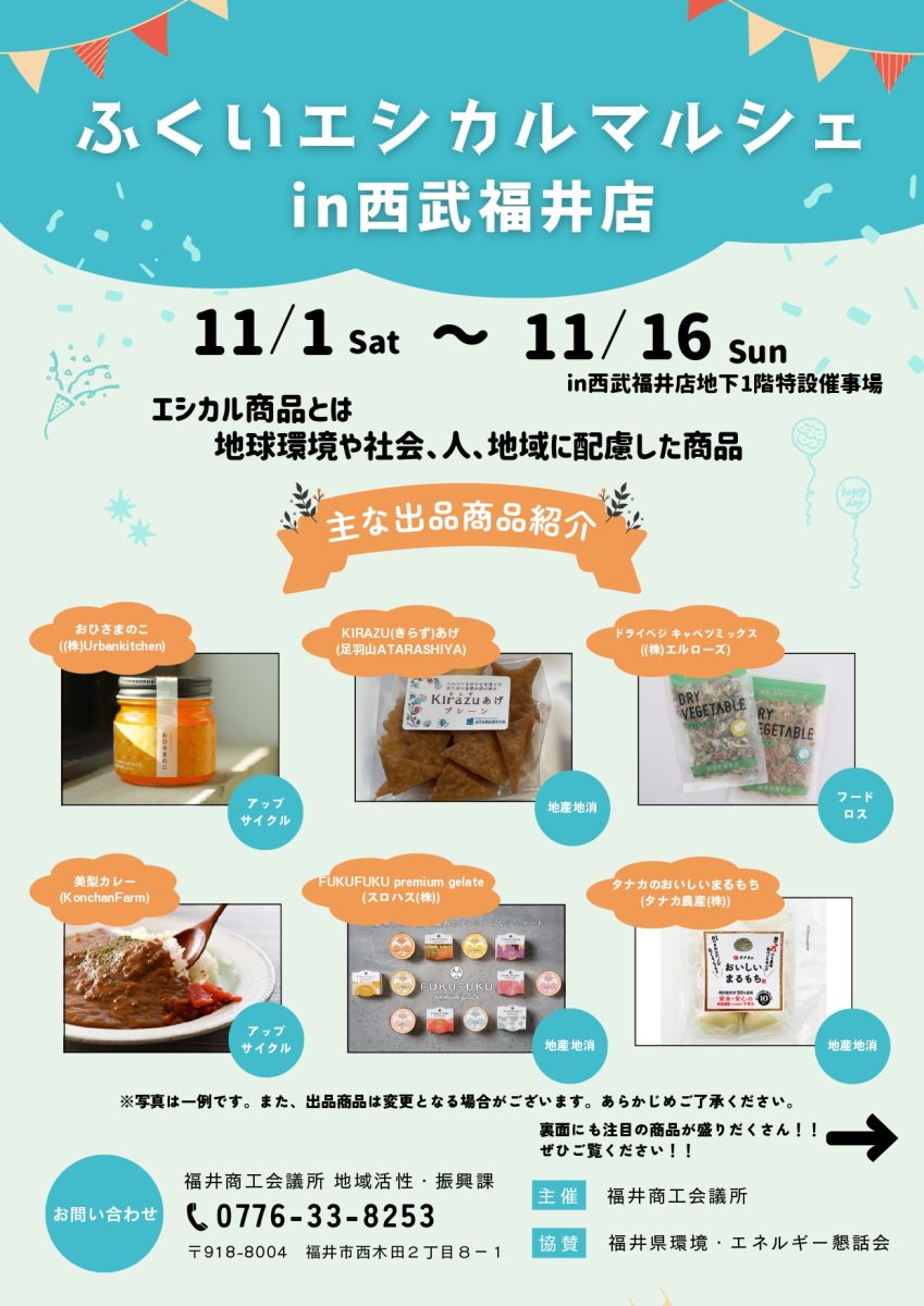 地域、社会、環境に配慮した商品が集まる、福井県のエシカル消費を推進するイベントです。お買い物の際はぜひお立ち寄りください。