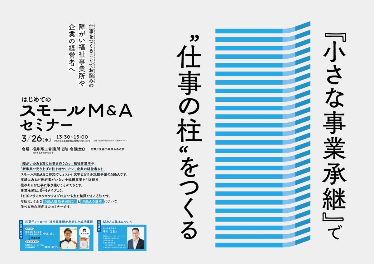 今回は、「老舗和菓子メーカーを福祉事業所が承継した成功事例」と「M&Aの基本」について学べる初心者向けのセミナーです。
